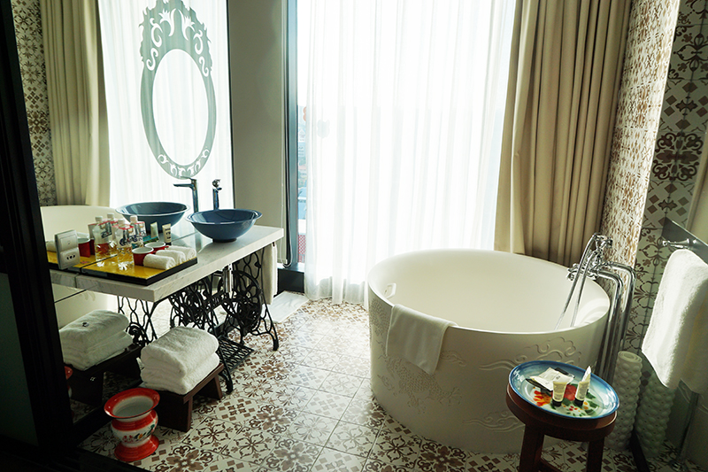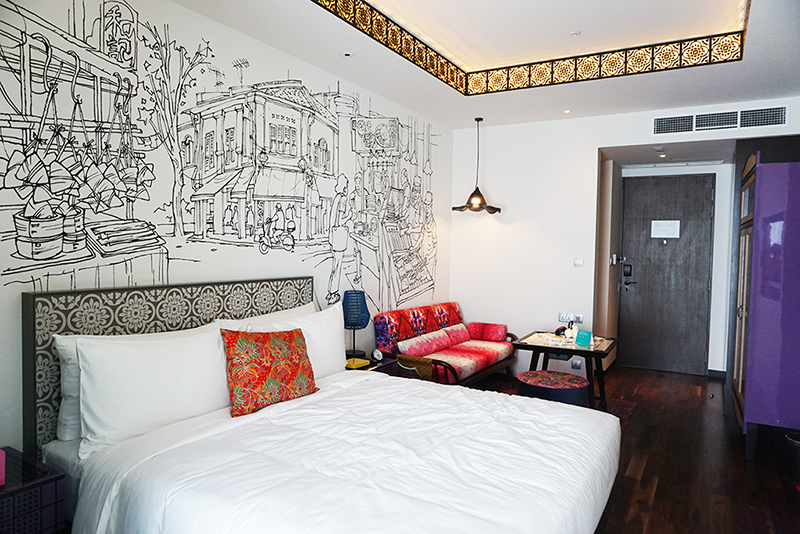 131間的客房加入不少本地娘惹文化元素,每間都畫上不同壁畫,如大排檔及咖啡室等,將當年本地華人的生活呈現眼前。浴室及洗手間刻意分開,仿照以前的本地華人排屋格局,而浴室的瓷磚也充滿娘惹結合普普的風格。