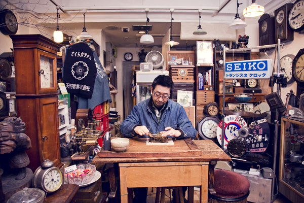 從南口通過仲通商店街後一直走,會找到「TRIFLE」。推開木門,先被鋪天蓋地的時鐘牆所震撼,這些古董築起的圍牆,把老闆活動範圍規限於一張充滿歲月痕跡的工作木桌,轉身都有難度,但老闆寺山先生明顯樂在其中,一直帶住微笑與眼前的老時鐘搏鬥。「家裡的掛鐘不能輕易被取代,因為那時鐘記錄過這個家這些年的歷史。」除了本身被鐘錶美感所吸引而學習修理時鐘,這一份替別人修補回憶的使命感,亦是寺山先生開店的主因。