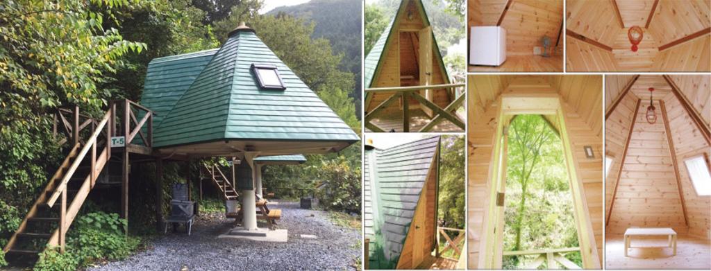 外形仿如離地版三角錐體的樹屋。