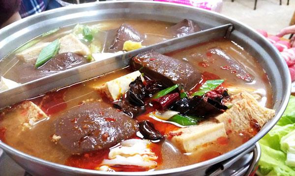 藍記乃全台首家麻辣火鍋宵夜店,已有近 30 年歷史。走實而不華平民路線,感覺更親民地道。招牌麻辣湯底以辣椒、花椒、胡椒等秘方熬製,忠於傳統川味,入口先甘甜,後鹹香辛辣,而且店子更別樹一格,堅持不可加沙茶醬來吃。