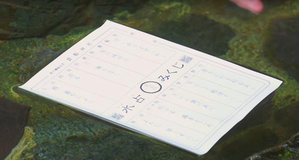 首先喺接待處買一張空白嘅占簽紙,價錢為 200 円一張,之後就將占簽紙放喺神社入面,貴船山湧泉嘅神水上面,唔使成張紙浸晒入水,只需輕輕將占簽紙放喺水面就 OK!