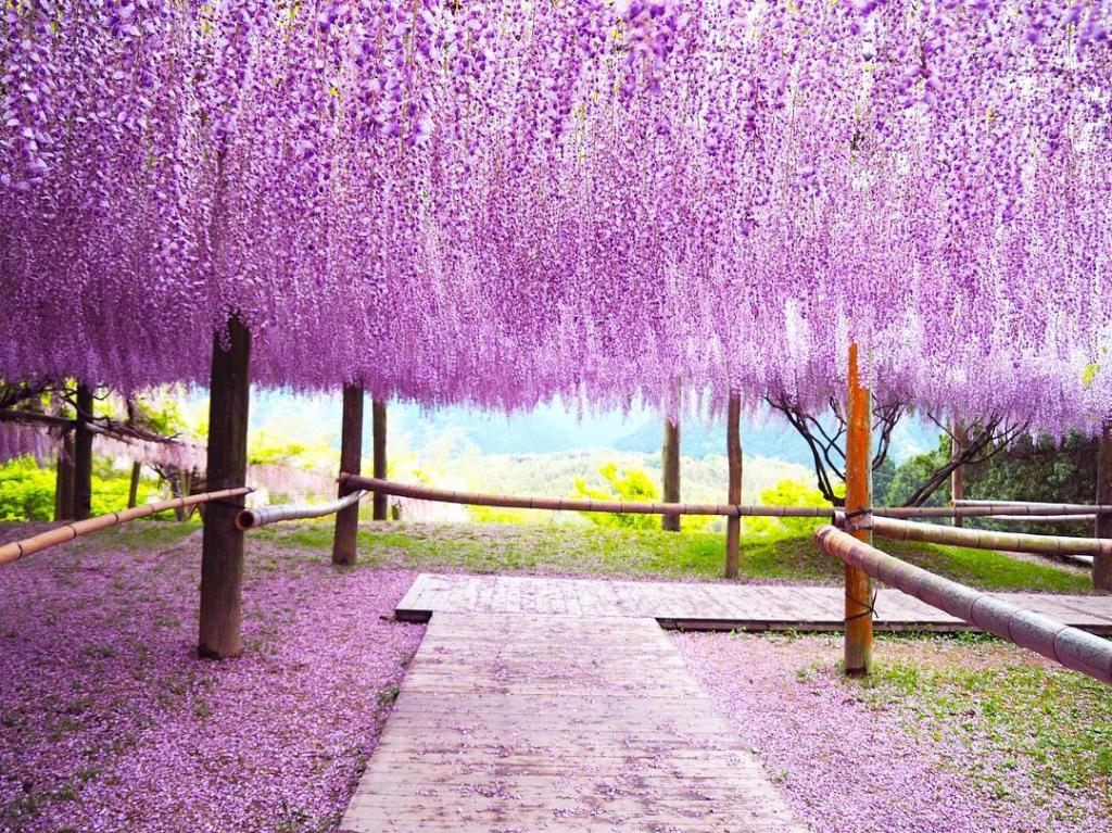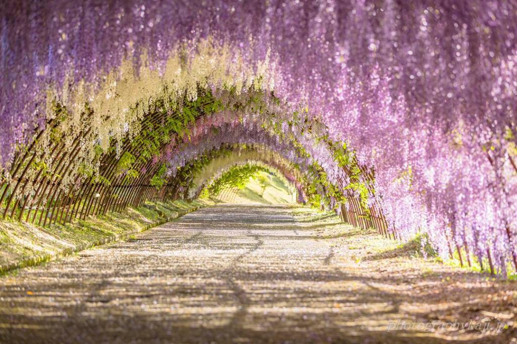 被 CNN 選為日本最美風景 31 選中其中之一,只於「藤花」及「楓葉」季開放的河内藤園,每年的 4 月底至 5 月藤花開花期間,都會見到藤棚垂墜著 22 種長度的紫、粉及白色的藤花。(圖︰photographykaji @IG)