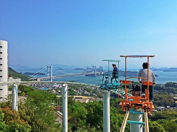 位於岡山縣倉敷的鷲羽山遊樂園有個「人力過山車」スカイサイクル,所謂嘅過山車其實是雙人單車,靠雙腳發動,在離地 16 米又帶點殘舊的路軌上環道一周。