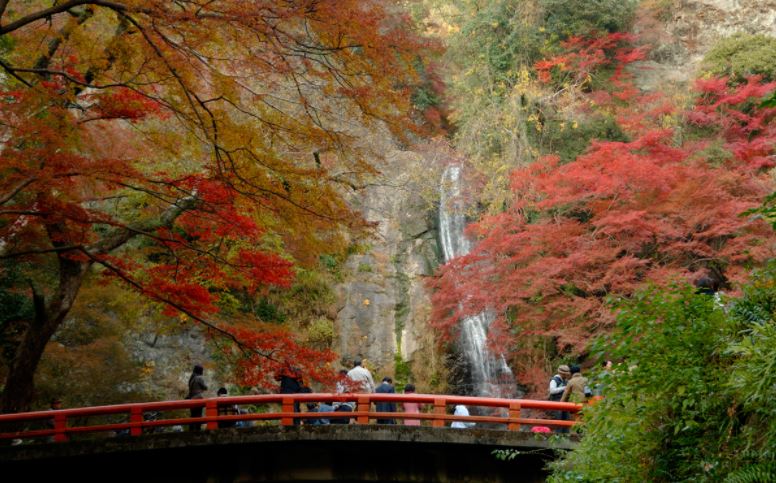 公園位於大阪的北部,景色優美而且距離市中心並不算太遠,因此是深受遊客喜愛的一個景點。而公園內高33尺的箕面天然瀑布非常知名,平時已經有不少人都會特意前往觀光,紅葉季時人流更旺,因為紅葉和瀑布相輝映的景色極其美麗,非常值得前去一看。