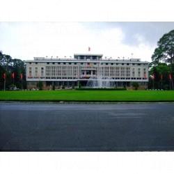 長長的 Le Duan Boulevard 林蔭大道的盡頭,佇立了一座飽經歷戰火的總統府。它原為 1868 年法國總統的諾羅敦宮,在越南分裂為南北時,被南越總統修建為有防禦宮殿,並正式改名為「獨立宮」。其後越戰於 1975 年結束,經了十多年戰亂後北越和南越終於可統一起來,為了隆重其事,「獨立宮」改名為「統一宮」。今天遊人看到的統一宮與以前的四層建築相差不遠,仍保留了昔日內閣會議室、外賓接待室及戰機平台,現在這裡每天人潮都絡繹不絕,是市內著名的旅遊熱點。