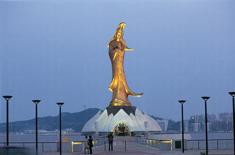 觀音蓮花苑位於宋玉生公園和何賢公園盡頭對開的人工島上,是中葡友好的像徵。觀音像由青銅製成,高 20 米、重 50 噸。而觀音像下的蓮花座其實是一間佛教綜合文化中心。中心分為兩層、上層售賣記念品,以一些木刻製品猶其特別。而下層就是多功能展覽廳,更有小型圖書館,以內有不同文字的佛學書籍。即使並非佛教徒,單是觀音像本身已是一個留影好地點。