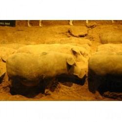漢陽陵是漢景帝劉啟於西元前 141 年駕崩後,葬於涇渭兩河間的咸陽原的陽陵,展現出西安古時的漢唐盛世。陵墓中的陶俑都能客觀地顯示「文景之治」時的生活狀況,例如成群的牛羊、外貌仍似野豬的家豬,展現當時多姿多采的文化。這裏的人物俑本來都有上色及穿了錦衣,但因年代久遠錦衣腐朽了,以致呈現裸露狀態。於是,男女陶俑的性徵都清楚地顯露出來。另有一種不男不女的陶俑,其實是太監,用作看守「後宮」的妃嬪。太監們都都愁眉苦臉,可看出當時的藝術陶塑都甚為寫實。