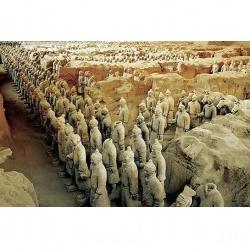 秦始皇的墳墓,位於臨潼縣城東約 5 公里處的驪山北麓,自西元前 247 年,秦始皇 13 歲起,修建時間長達 37 年之久,動用人員超過 70 萬。陵墓分內外兩城,有眾多的珍貴品陪葬,包括已發掘及出土的陶俑 1000 餘個、戰車 8 輛、陶馬 32 匹及各種青銅器近萬件。雖然它們的價值極高,但墓內機關重重,而且政府還在研究葬品的保護方案,所以至今仍有部分尚未挖掘。