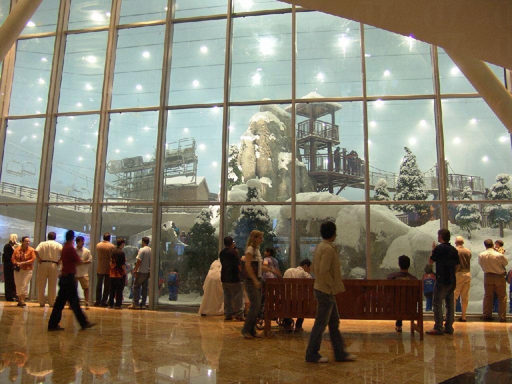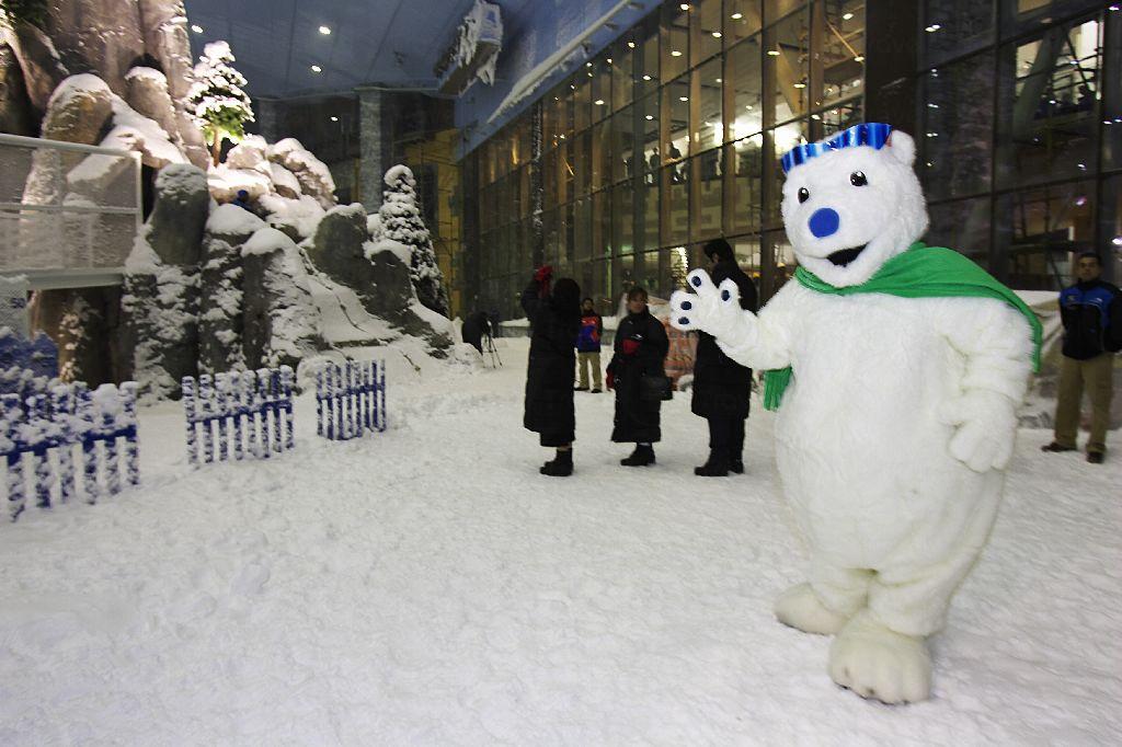 遊客走進佔地 22,500 平方米(相等於 3 個標準足球場)的「大雪櫃」內,可有兩個選擇:滑雪場和白雪樂園。喜歡刺激的遊客多會選擇前者,因為該處設有 5 條難度各異的滑道,小朋友初學者至專業滑雪者都可各找到滿足感,最富挑戰性的滑道全長 400 米,落差達 60 米,若嫌雪撬太平凡,Snowboarders 也可大展身手,刺激感即時 3 級跳!至於佔地 3,000 平方米的白雪樂園,則會讓人產生幻覺——以為自己處身在冬日的北歐!除了滾雪球、砌雪人、玩雪兜這些指定動作外,更有冰雕展出,配合燈光與音樂,讓人陶醉在一幕幕疑幻似真的影像中。