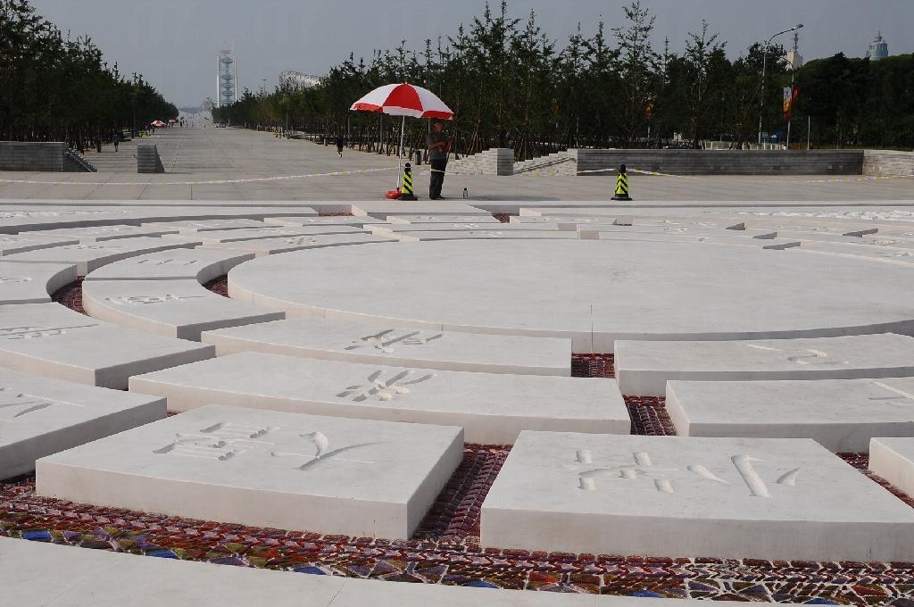 景觀大道全長 1.4 公里,綠樹夾道,空間寬廣外,設計極富中國傳統特色。一出地鐵站,兩根高 21 米的朱紅色圖騰柱引人注目,這名為和諧闕的柱子有着精美的比翼鳥、連理枝及並蒂蓮圖案。柱下是刻有天干、地支和廿四節氣的漢白玉農曆壇廣場,晚上彩色部分與沿路的琉璃製民族之花同時泛起光芒,不遠處放有一對刻有喻意中華 56 個民族的青銅器。大道盡頭,卻是現代化象徵的鳥巢等建築,形成強烈對比,煞是好看。