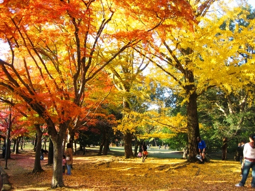 很多時賞紅葉都只能遠距離觀看,奈良公園除了可以走到楓樹底下,近距離賞紅葉、捨紅葉外,還有麋鹿做陪襯,令攝影的作品更加生氣!