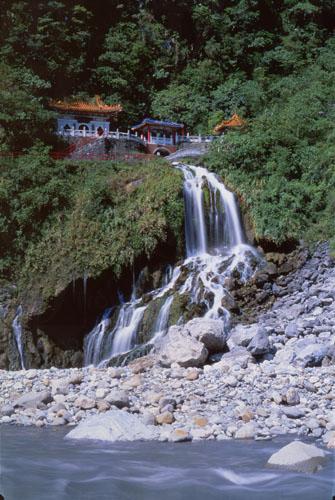 長春祠供奉着興建中橫公路過程中殉職的 212 位榮民靈位,立於斷崖之下,為環形步道所包圍。建築採用唐式風格,依地勢嵌入山壁之間,清新的泉水自山壁湧出,形成一道飛瀑,公路局取名為「長春瀑布」,行經觀景大道旁山洞旁時聽見流泉聲聲伴著幽幽鳥鳴,美得像一幅秀麗的國畫。