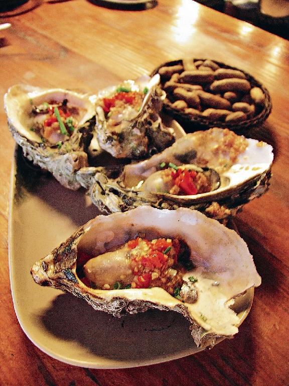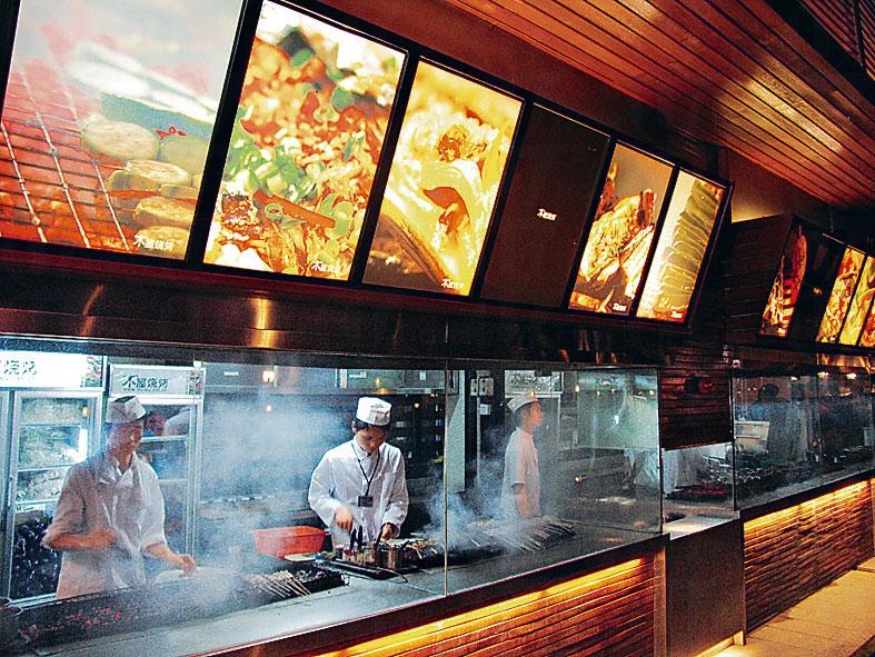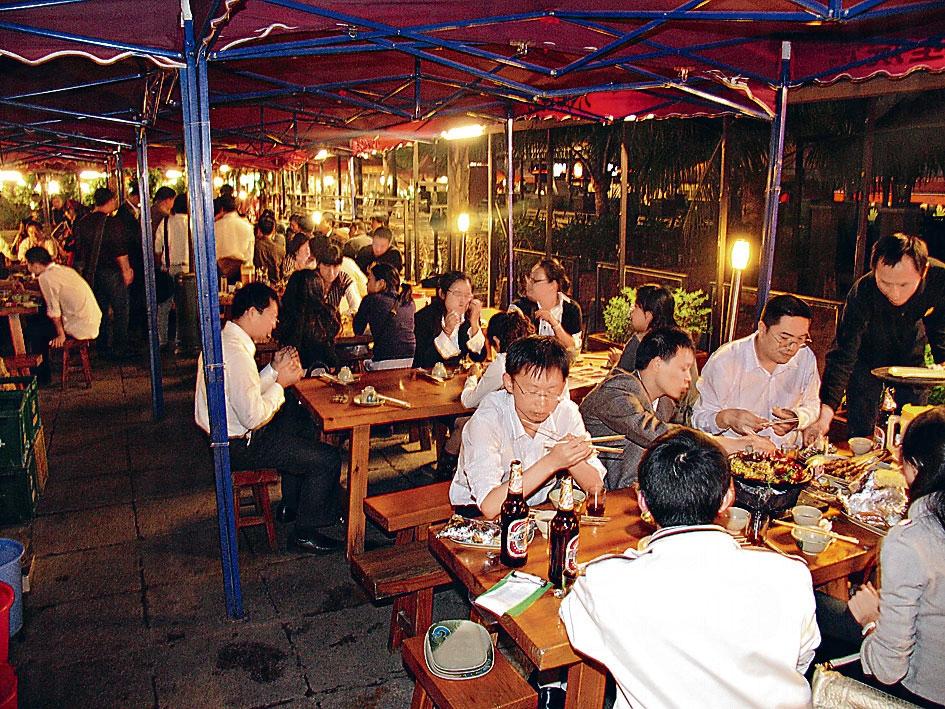 木屋燒烤03 年已開業,食物種類很多,豬牛羊雞以至生蠔都有,餐廳即場燒,陣陣肉香令人食指大動,晚上 5 時開業,很多時7 時已滿座。雖然老闆是名人,但食物價錢不算貴,招牌羊棒骨 14 元人民幣,最受歡迎是烤生蠔,每天可售出逾千隻。