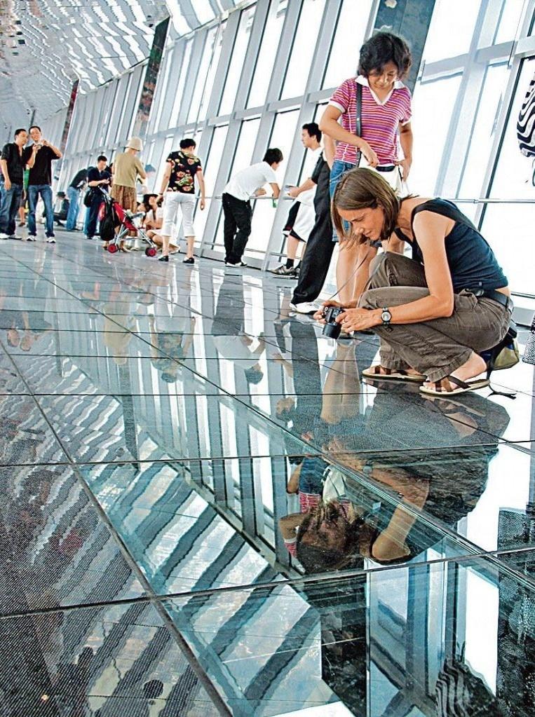 樓高 492 米、世界第 3 高樓 —— 上海環球金融中心,排在杜拜的哈利法塔、台北 101(連頂端天綫)之後。觀光廳卻比台北 101(觀光廳在 89 及 91 層)高,已成為世界最高觀景台,上海最新的旅遊項目。