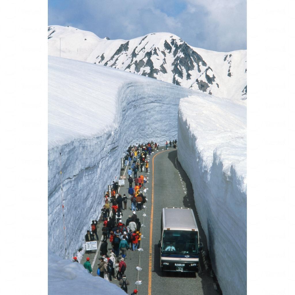 雪之大谷,是立山黑部每年四月下旬至五月下旬限定出現一個多月的大自然作品。富山縣的立山黑部是常下豪雪的地方,如此宏偉的雪谷,大部份都是天然而成的,只是,當中的車道,其實是由人利用電剷車,將堆在車路上的積雪通通剷走。曾幾何時,剷出來的雪牆可達到 20 米之高,雖說因為全球暖化的影響,雪漸漸變得少了,但依然是高達 10 多米的雪牆還是可以令人嘆為觀止。如想觀看如何在 10 多米高的積雪之中,開闢一條車路,便要在四月中下旬來了。