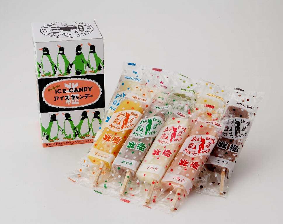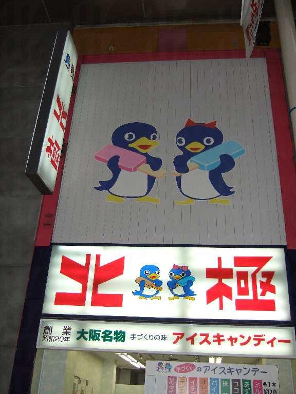北極開業於第二次世界大戰後,當時戎橋筋商店街周圍並沒有一家可販賣即食食品的店舖,於是便以「想製成孩子們及女性都喜歡吃的冰條」的理念創作了以當時較貴重的砂糖製成冰條,時至今日已變成大阪人無所不知的名物,當中更以牛奶及紅豆味最受人歡迎。為求多元化,北極多年來不斷推出新口味,而每年的九月至四月尾更會發售冬季限定的回轉燒,為嚴寒的冬天添上不少暖意。