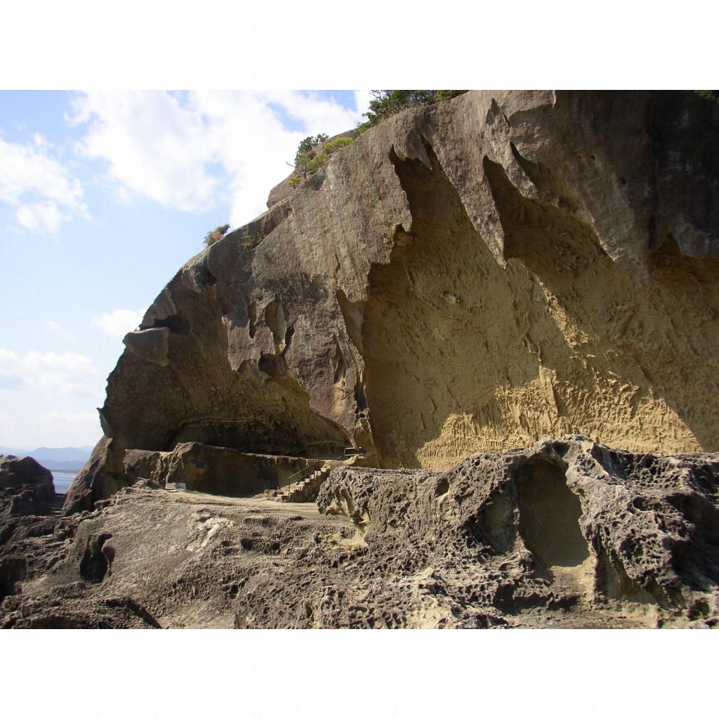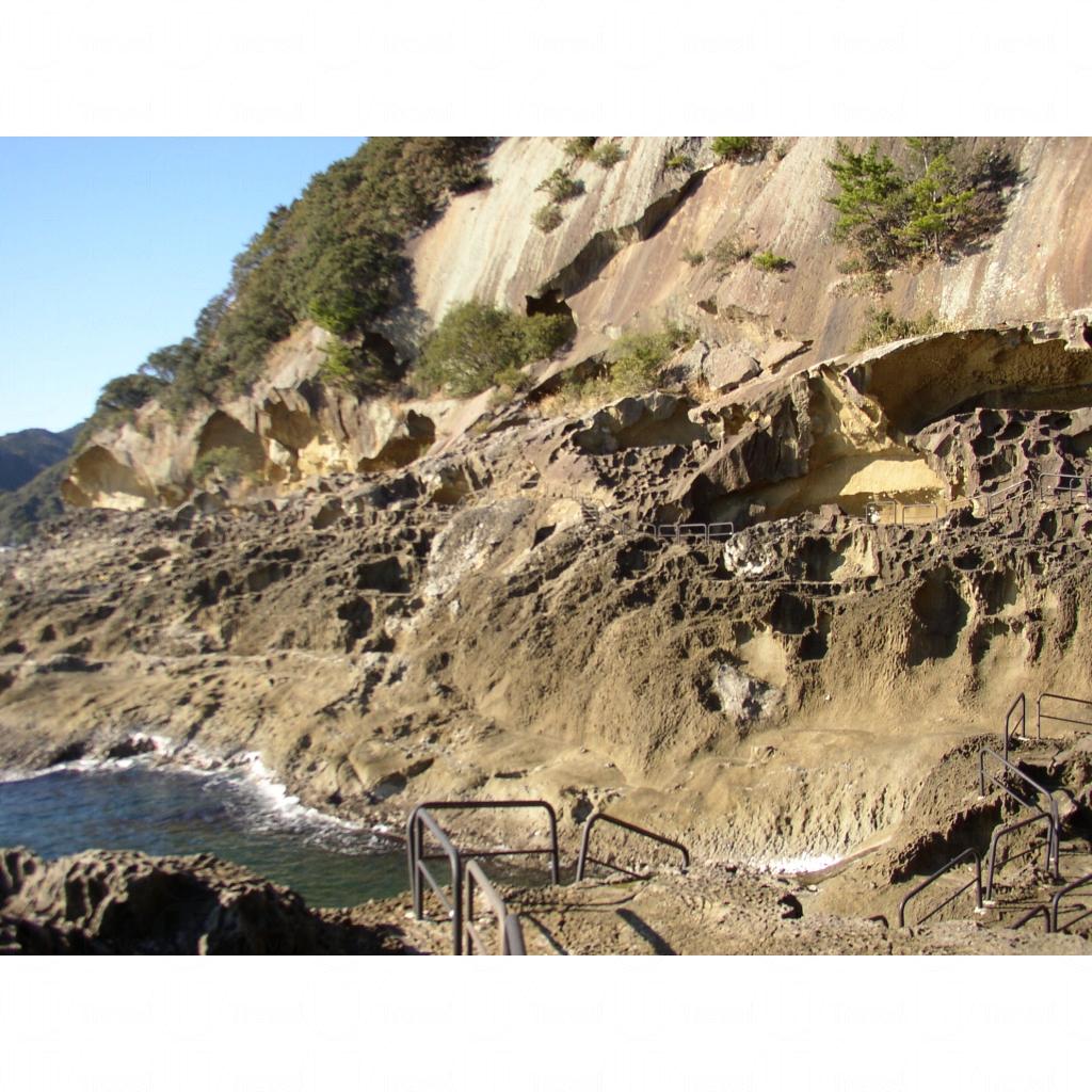所謂的鬼ケ城,其實是由海風侵蝕及山嶺經歷數次大地震的凝灰岩奇觀,大小無數的海蝕洞窟沿着海岸綫以梯級形式排列,形成了險峻的自然景象,一直伸延的鬼ケ城更令其更見壯觀。