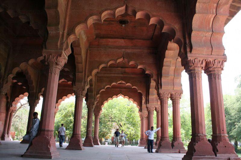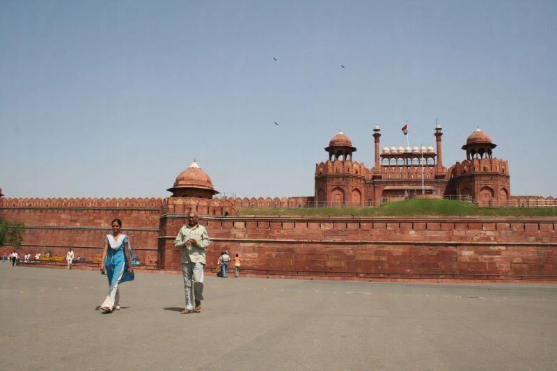 紅堡位於新德里城內,是 17 世紀莫臥兒帝國第五代帝王沙賈汗建造的,由於城牆和內部是用紅砂石砌成,所以稱為紅堡。紅堡有護城河環繞,四面環以厚重的圍牆。圍牆為石質,總長度約 2500 米,高度臨亞穆納河一側稍低,臨德里主城區偏高,從 16 米至 33 米不等。