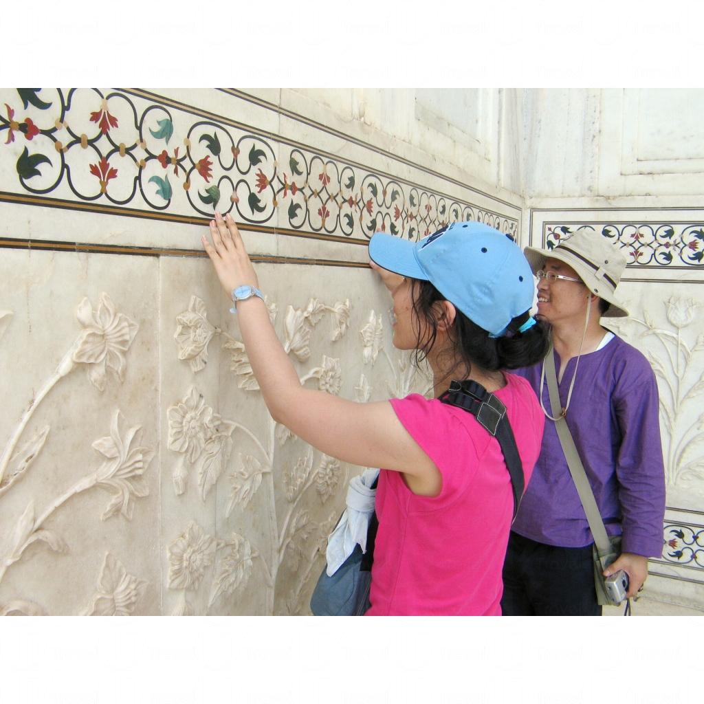 泰姬陵的建造背後其實有一段動人的故事,話說沙賈汗與皇后結婚 19 年,皇后在 1630 年第 14 次生產中去世,臨終前向皇上要求了四個承諾,其中一項便是為她建造一座人人可瞻仰的美麗陵墓,於是沙賈汗便耗資五百萬盧比,以二萬名工匠,花了 22 年時間,完成了這座震驚世人的大理石藝術建築,作為愛妃長眠之所。