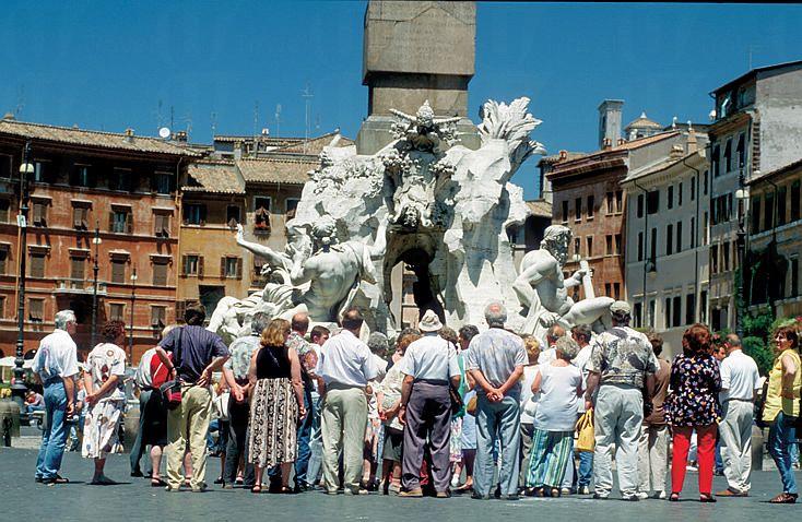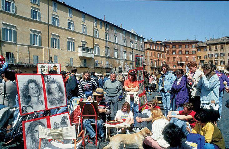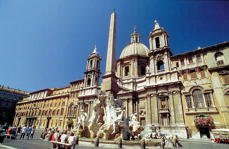 廣場上的 Chiesa di Sant' Agnese in Agone 為 Bernini 的死敵 Borromini 所設計,據說四河噴泉內,尼羅河神雕像之所以用手掩著眼睛,就是避免看見那座由 Borromini 所設計的建築。