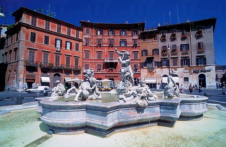 廣場的前身原是一個競技場,直至 15 世紀時被重新修建,才成了 Piazza Navona。這裡有著 3 個羅馬市內有名的噴泉,Fontana dei Quattro Fiumi、 Fontana del Moro 及 Fontana del Nettuno,位於中央的四河噴泉 (Fontana dei Quattro Fiumi),是意大利藝術名家 Bernini 設計,描繪了尼羅河 (Nile)、恆河 (Ganges)、多瑙河 (Danube) 及拉普拉塔河(Rio de la Plata)。