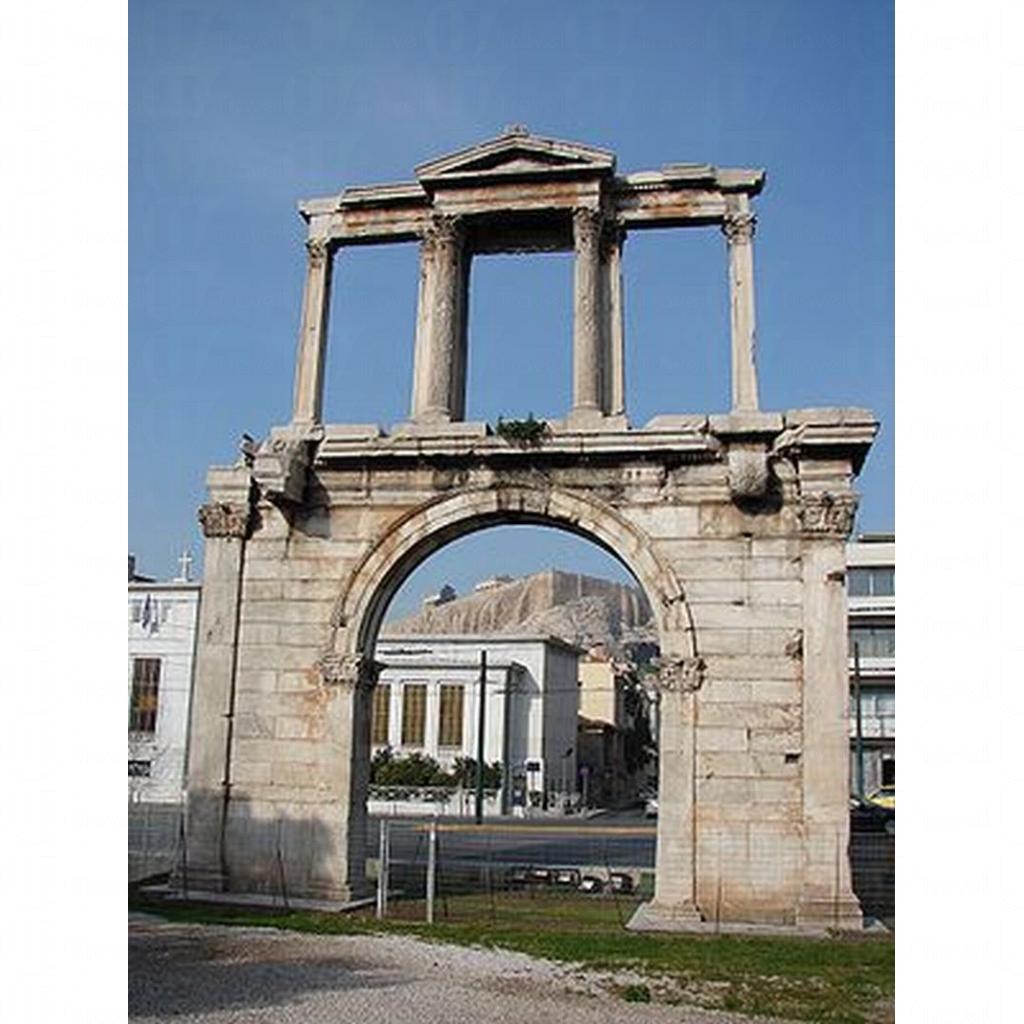 哈德良拱門位於宙斯神殿的北面,也是哈德良時代的建築作品,始建於公元 132 年的羅馬時代,建立拱門的目的是標明雅典古城和新城之間的界線,是當時用於區分城市界限的標誌性建築。
