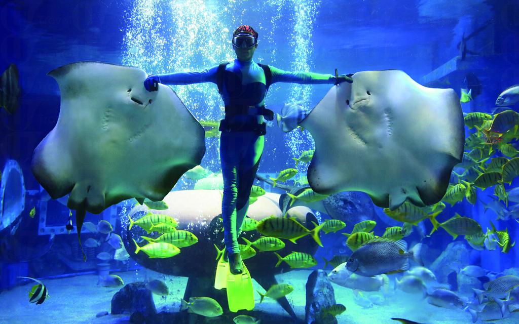 一幕華美舞蹈秀——《鰩魚的冰海世界》。世界首創的冰海鰩魚秀“天使之翼”,有您意想不到的深海鰩魚二人轉……