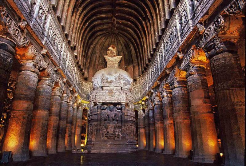 阿旃陀石窟位於印度馬哈拉施特拉邦奥蘭加巴德城以北 106 公里,始鑿於西元前一世紀,約持續 500 年,1983 年聯合國教科文組織將石窟列為文化遺產。