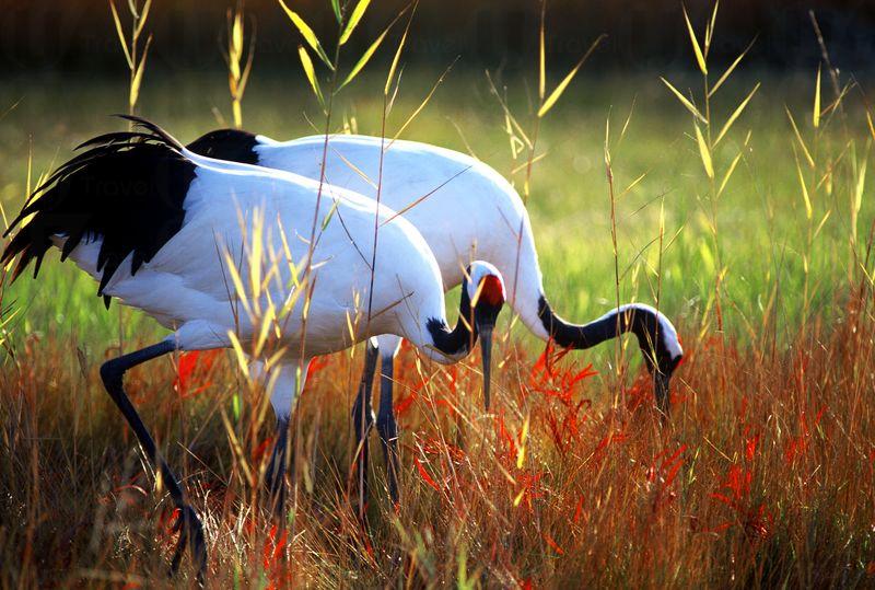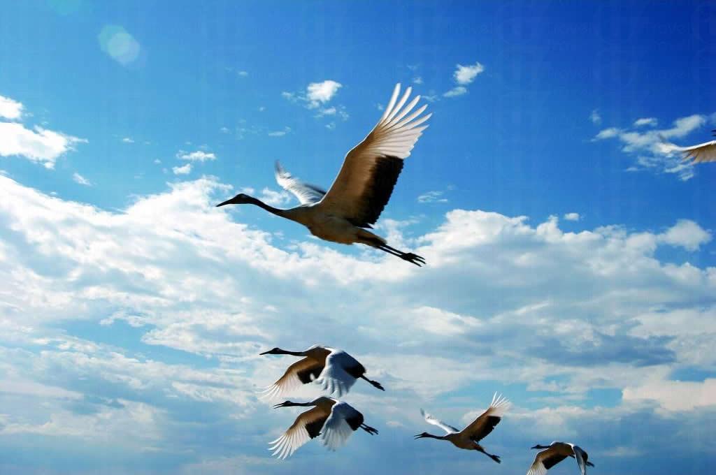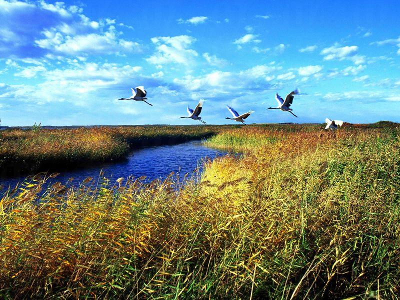 除鶴以外,還有大天鵝、小天鵝、大白鷺、草鷺、白鸛等,真可謂野生珍禽的王國。每年 4 至 5 月或 8 至 9 月,約有二、三百種野生珍禽雲集於此,遮天蔽地,蔚為壯觀。而冬季,遊客更可在雪地上觀鶴,踏著透明的冰面,穿過高高的黃色蘆葦蕩,親眼目睹丹頂鶴在空中起舞高歌。