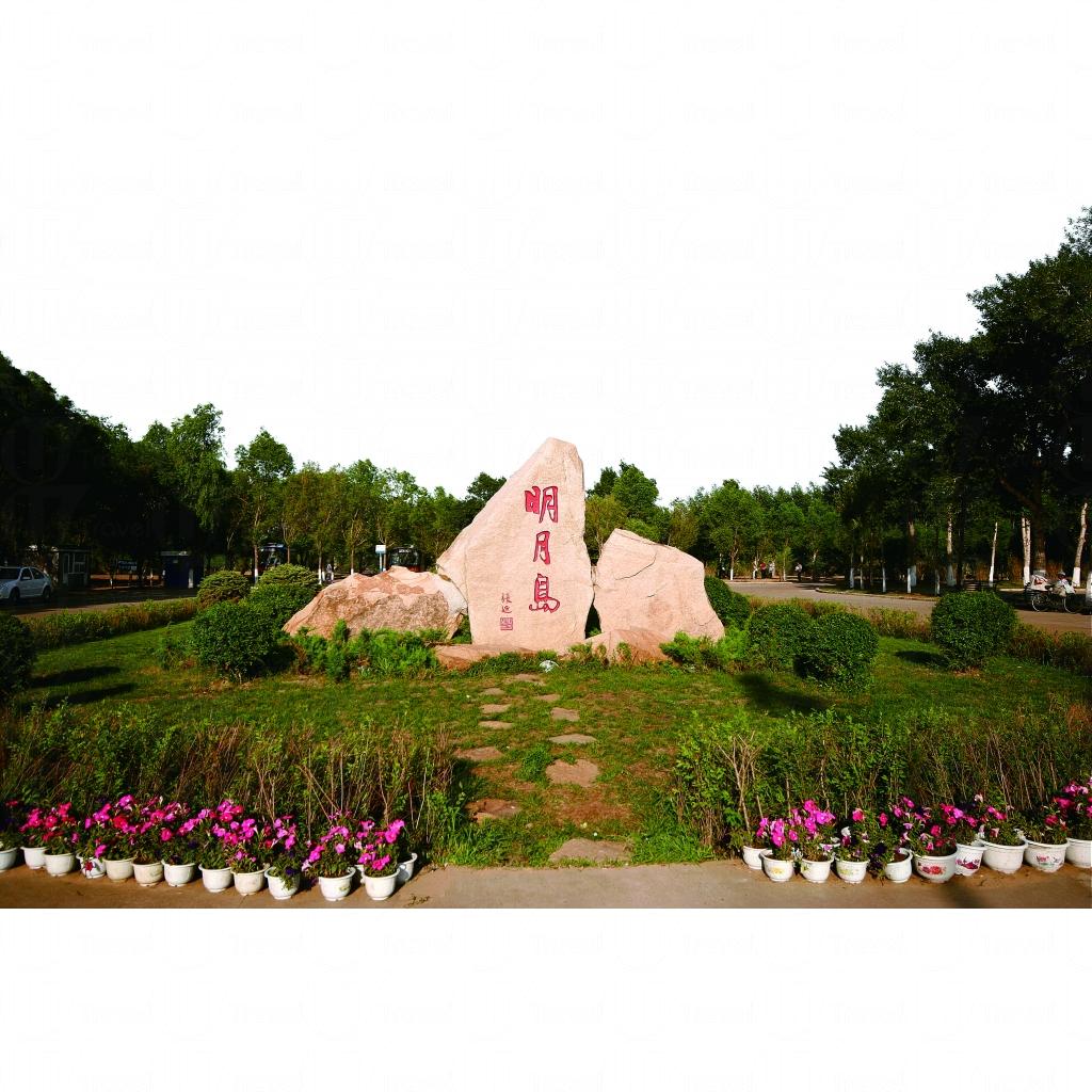 明月島與齊齊哈爾市區隔江相望,相距僅7公里,遊人乘船逆江而上只需一刻鐘便可抵達。這座江心島只有約0.8平方公里,因形同一彎明月倒映在嫩水之上而得名。