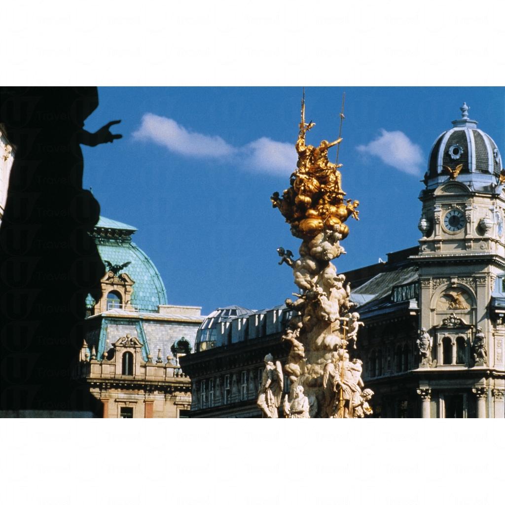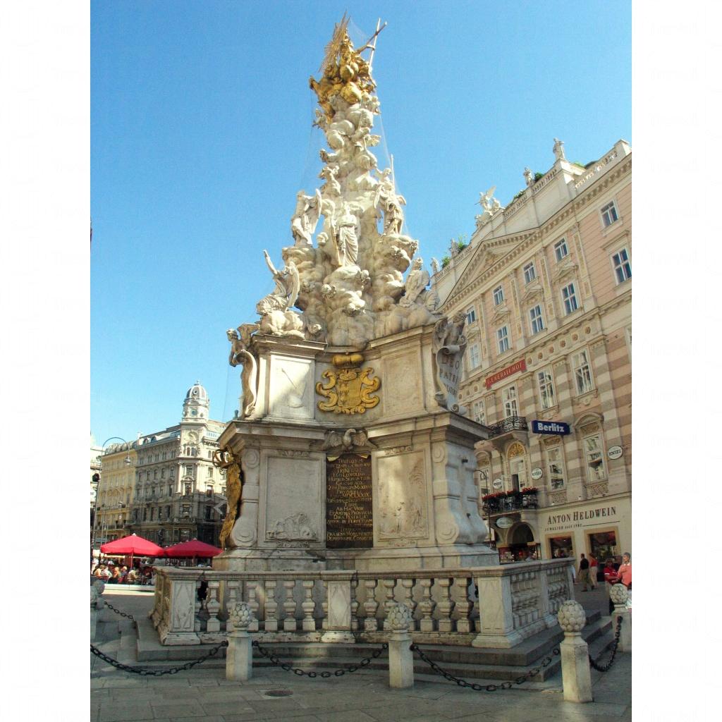 黑死病紀念柱,又名「三位一體紀念柱」,自 1693 年矗立於 Graben 大道中央,是哈布斯堡王朝雷翁波特一世 (Emperor Leopold I) 為感謝上帝終結黑死病而建。1679 年黑死病肆虐維也納,黑死病即是鼠疫,是令人聞之色變的傳染病,造成歐州大量民眾死亡。