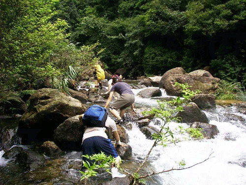 九馬畫山峽谷漂流景區,位於陽朔縣興坪鎮西北部 4 公里處,是一個集中了漂流、露營、攀岩、戶外拓展等項目的綜合型休閒旅遊景區。全程約需 1.5 小時的峽谷漂流之旅,從雲涌八仙景點開始,全長約 3.5 公里,整體落差更達至 180 米。對刺激玩意沒多大興趣的遊客,也可嘗試沿漓江景區徒步至九馬畫山,靜靜地欣賞大自然的優美景色。