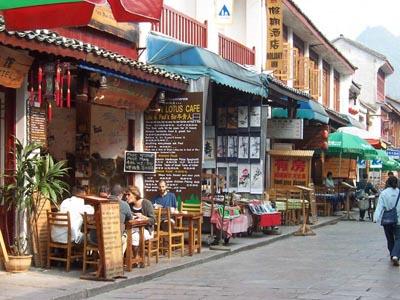 整條街仍保持著中國傳統街道的建築風格,但在這些建築內的都是各式各樣的酒吧、餐廳、旅館、民間藝術商店,甚至攀岩吧等等,吸引了不少世界各地的人士到此處消遣流連,遊客目光所及的地方,都儘是不同國藉的人士,也使古老的西街成了奇異的中西文化交會點。