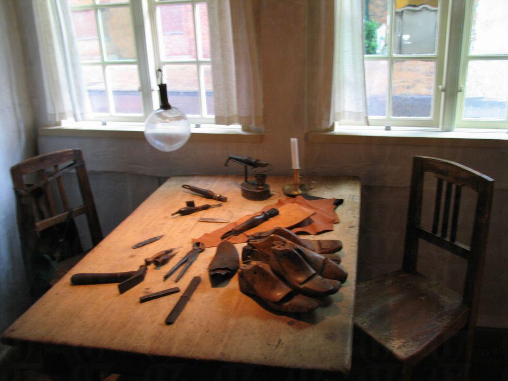安徒生出身寒微,父親是鞋匠,母親是個洗衣婦,童年的他沒上過正規的學校,而由 1807 至 1819 年,即他的 14 歲以前都居住在這間黃褐色的房子裡。屋內保留了他與父母的睡床,他對自己家鄉和童年生活的描寫及版畫。更保存了不少家具、小花園,以及他那當鞋匠的父親的製鞋工具等。