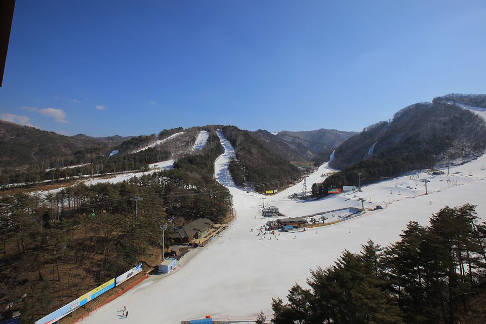 滑雪場位處遠離煩囂、海拔700-1500公尺的高原上,有「韓國阿爾卑斯山脈」的美名,亦是人氣韓劇「冬季戀歌」的拍攝地。