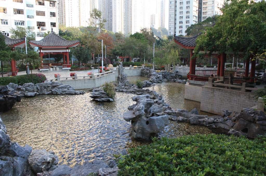 位於觀塘區內的康寧道公園,以中國傳統特色作為公園設計藍本,為繁榮市區帶來了一片靜土。