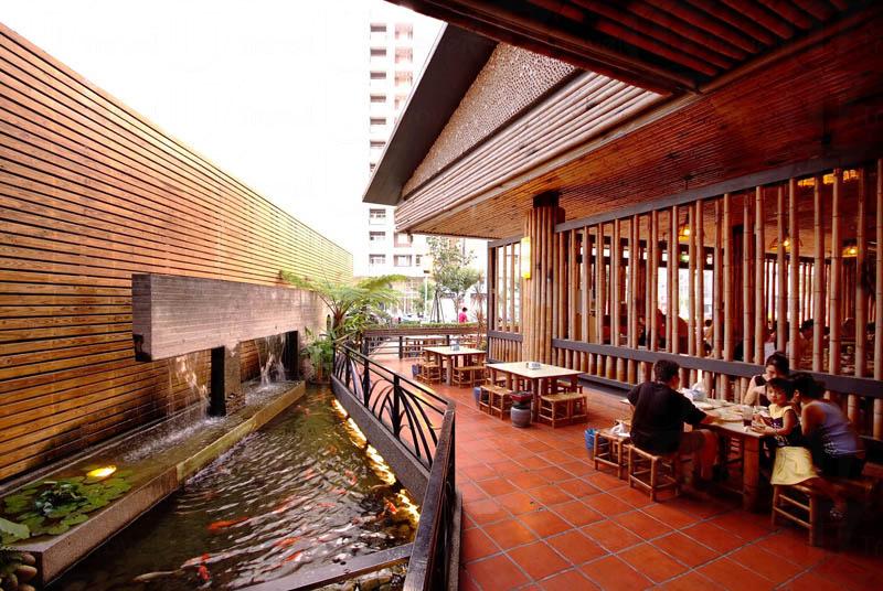 裝修也非常有特色。餐廳位於流水淙淙的溪洲橋邊,以孟宗竹為主建材,饒富鄉野情懷;食客可看到室外的人工池和養殖場,環境寫意。另設有大型專用停車場,方便食客自駕前往。