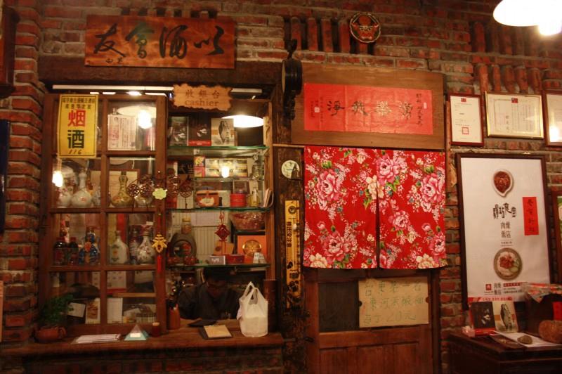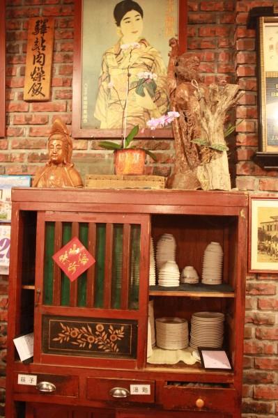 《驛站》的門口以木牌裝飾成台灣老式火車站,走進店內,陳設以木製家具以及紅磚牆為主,二者十分協調。原來店內的老家具都是老闆在家鄉見到的廢棄物,老闆把它們撿回來再修理清潔後,就成為了今天大家所見的懷舊家具,古早味非常。