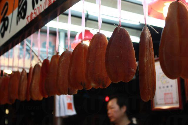 如果有機會到高雄逛逛六合夜市,別錯過烏魚腱。一般烏魚都有著兩片大大的烏魚子,但卻只有一小條的烏魚腱,這條連接兩片烏魚子間的小小腱蒂,醃過之後再炭烤,嚐起來口感像牛腱,味道卻大大勝過牛腱。這烏魚腱目前大概只有六合夜市仍有得售賣,一小條賣新台幣 30 多元,大約一兩口就吃完,但卻回味很久。