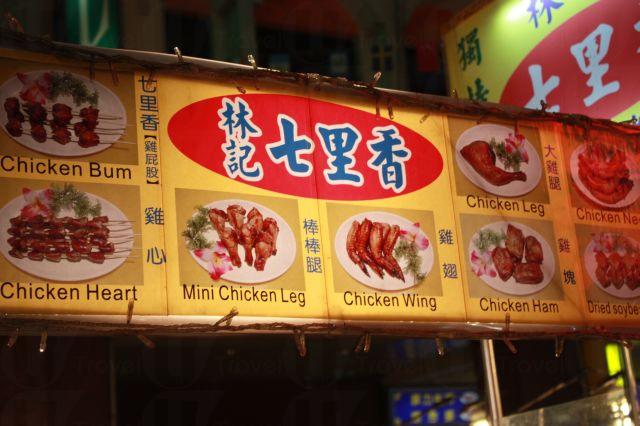 林記七里香以售賣烤物為主,推薦的小吃首推七里香肉串,其實就是雞屁股,名字不好,但非常好吃!肉質很軟,不會有燒太久而硬得很的口感,而其他雞的部分如雞心、雞棒、雞塊,甚至雞腿,也相當好吃。食物烤得外乾內軟,含肉汁卻不油膩。一定要趁剛烤上時,熱呼呼的吃上兩串,才算吃得過癮。