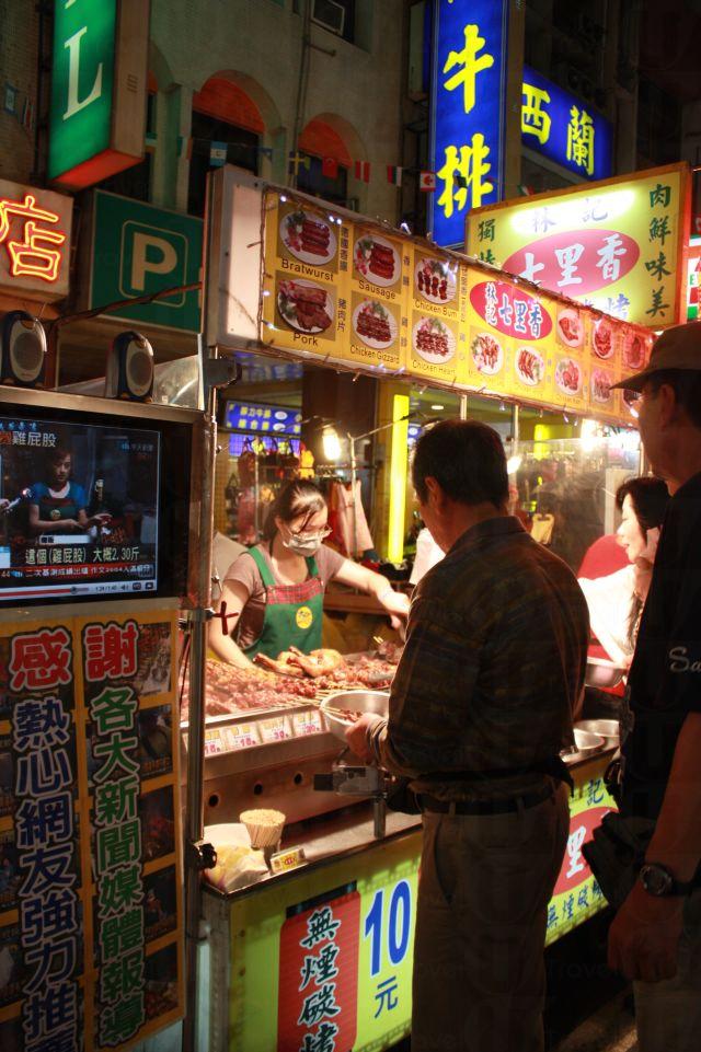 六合夜市裡的林記七里香,是六合夜市中一家備受注目的烤肉小吃店。這家店經常會有顧客在店門前大排長龍,店內烤肉的香氣四溢,更有新聞媒體報道的招牌,可見其受歡迎程度。