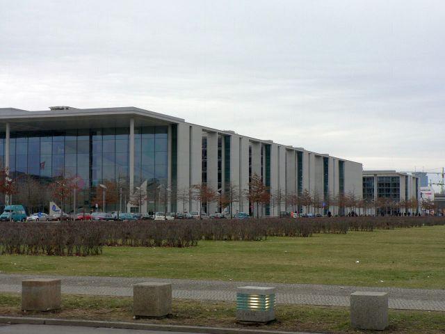 作為「聯邦紐帶」組成部分之一的聯邦總理府,由中間的九層主樓及向兩側延深的兩翼組成,上部 18 米高的半圓形是主樓的標誌,外牆則使用了玻璃面設計,使內部顯得透明、寬闊。