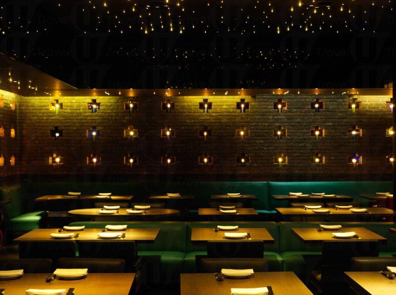 丘記茶苑共分上下兩層,地面茶室供應中西精美茶點,包括 150 種中國茶、英式茶,30 多款點心小菜如燒賣、腸粉、珍珠雞,以及多款西式甜食等。地庫則是一個以燈火配上彩藍水族箱吧的星光樂園,讓食客在迷幻又浪漫的環境中,嚐盡各式時令小炒。