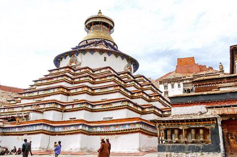 白居寺是西藏重點文物保護單位之一,始建於公元 1418 年,是繞登滾桑和克珠.格勒巴桑主持興建的。白居寺原有 16 個扎倉 ( 即僧院 ),西藏內不同教派如白教、紅教、黃教和薩迦教等以扎倉為單位,同時共存於白居寺內,非常罕見。白居寺有座佛塔,是由近百間經堂依次重疊建起的塔,是西藏地區規模最大、製作最精美的佛塔之一。