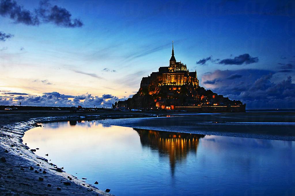被譽為「世界第 8 大奇蹟」的聖米歇爾山 (Mont Saint-Michel) 矗立於法國諾曼第附近,其海拔 88 米,平日被沙岸所包圍,每當傍晚漲潮之時,會形成壯觀的小島。