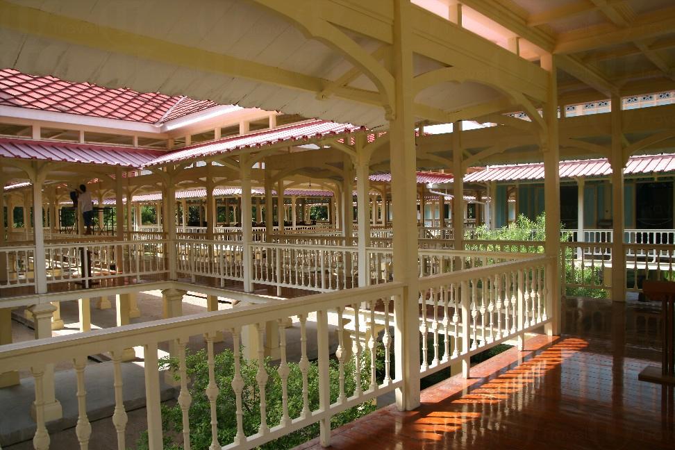 整棟建築以 1,080 根柚木柱子支撐起共 16 棟的高腳宮殿,每根柱子都有凹下的儲水空間,以杜絕地面濕氣和蟲蟻。每棟樓房典雅大方,牆壁、窗子都漆上不同顏色,以示區隔。樓房高約 2 至 3 層,樓底很高,通風良好,全部面向海景。宮殿由長廊連接,從陸上延伸至海濱,並設有小碼頭及視野瞭闊的觀景房。