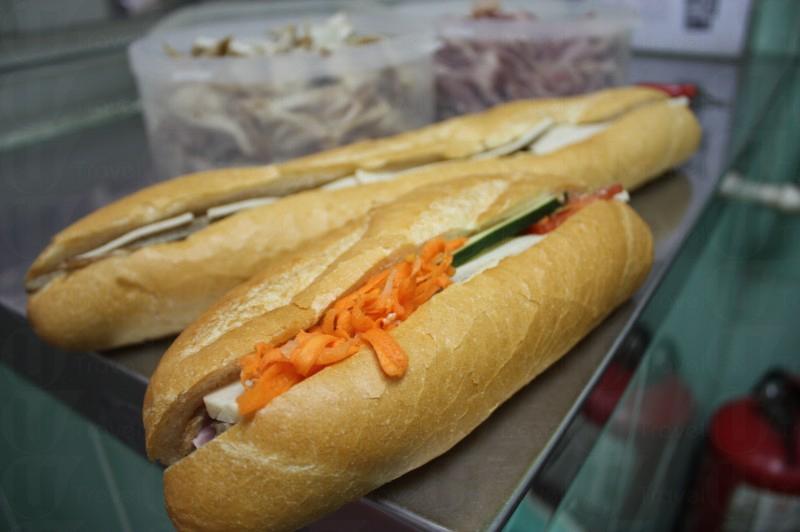 添記的越南法式三文治分大細份量,大的 16 吋賣 $42 ,而細分量的則有 8 吋,售 $22。老闆先以法式嚼肉、越南扎肉、五香腩肉以及鹹豬手肉夾入法包中,再噴上水分,以防烤乾,然後放入焗爐中烤熱,便製成一個既脆又帶有鹹香而酸甜的法式三文治。