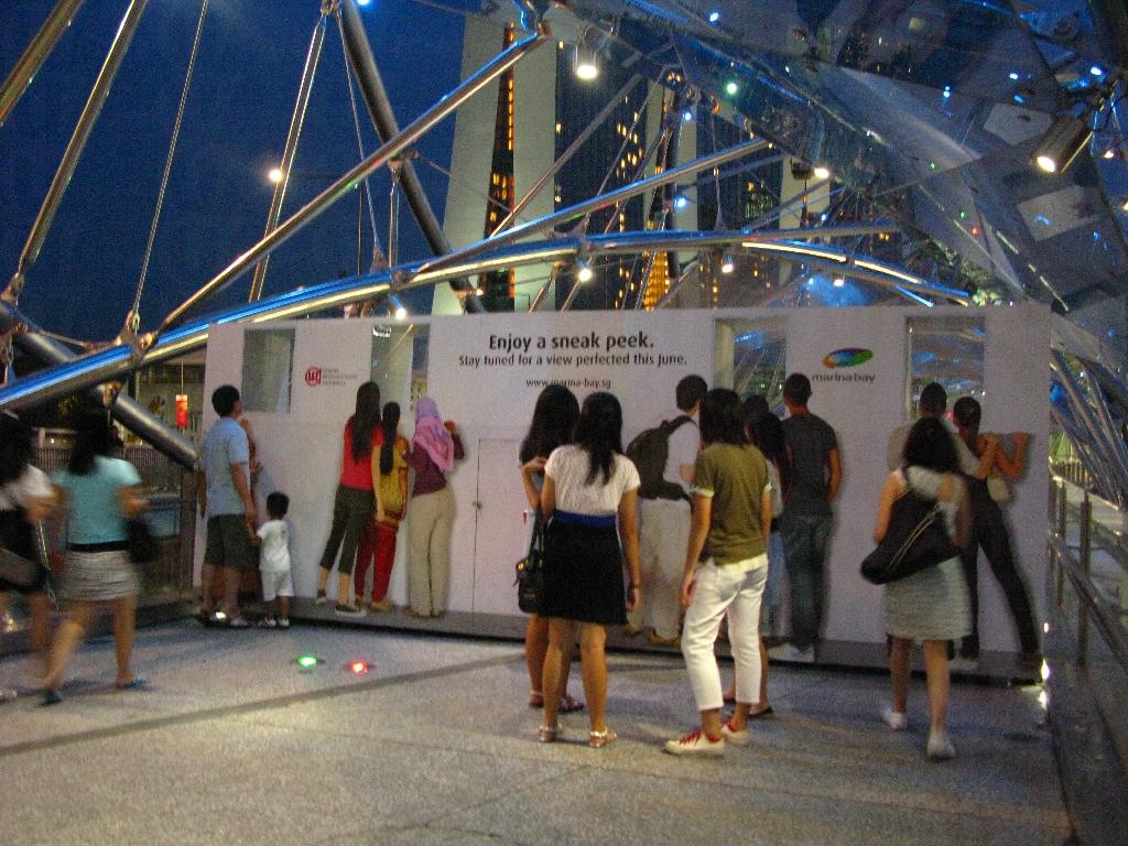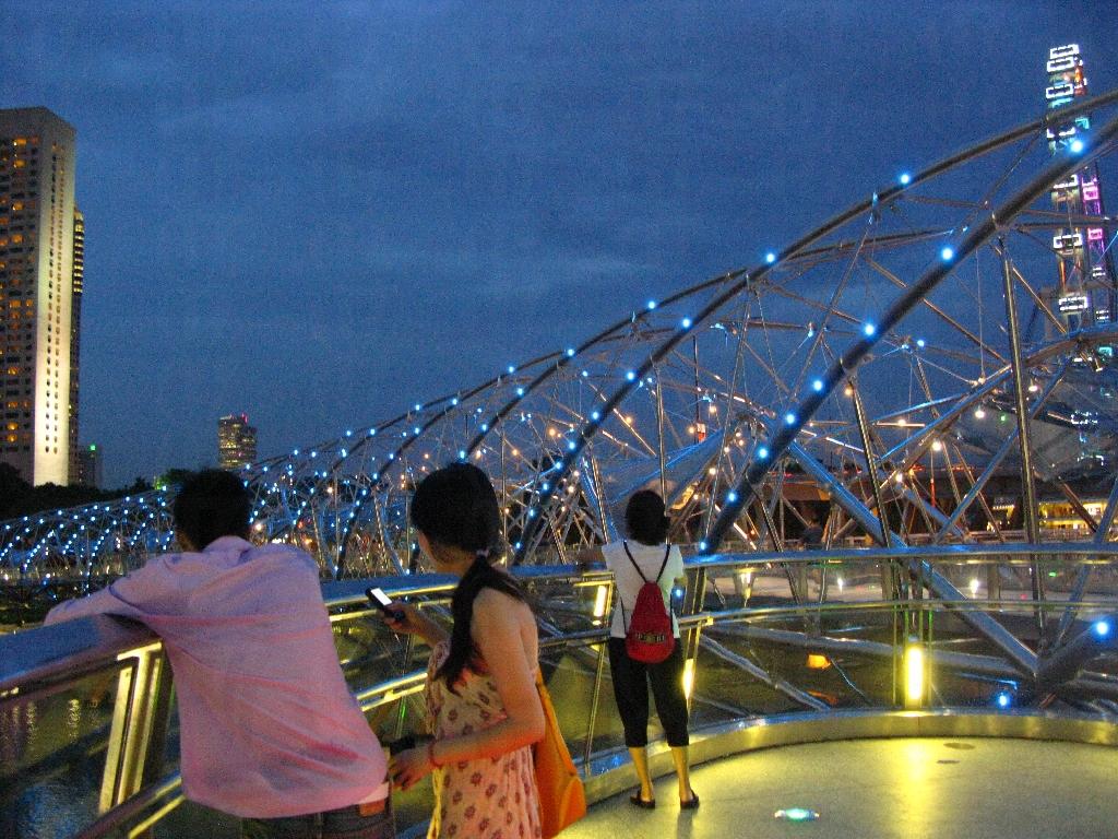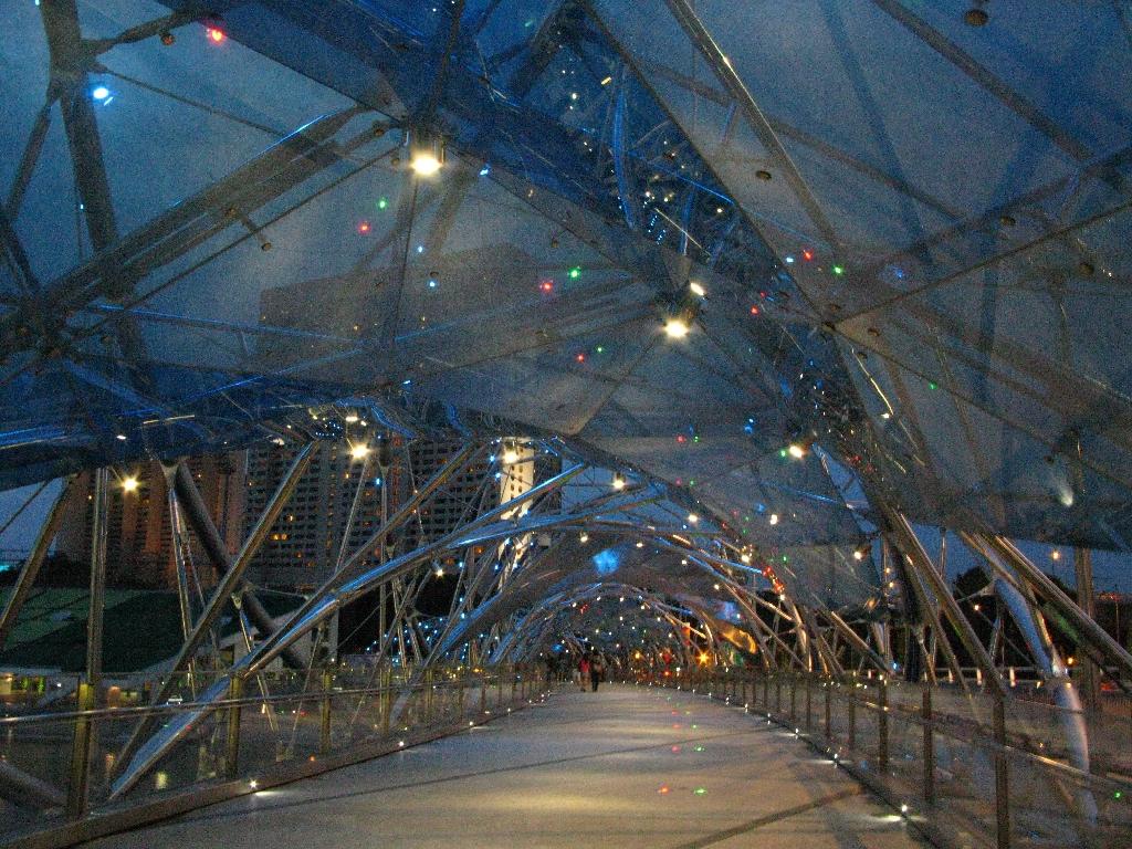 在新加坡的 The Helix 是全球首創的「雙螺旋橋」,於 2010 年 4 月開幕,是一座由兩條主鋼索上下交叠與纏繞兩岸橋面的螺旋橋。The Helix 全長 280 公尺,闊 6 公尺,能夠容納 16,000 人,連接濱海灣新舊市區,行人不消 10 分鐘便能步行 600 公尺距離,能暢通無阻地往返濱海中心和濱海灣金沙,沿途更可飽覽市區高樓壯麗的景色。