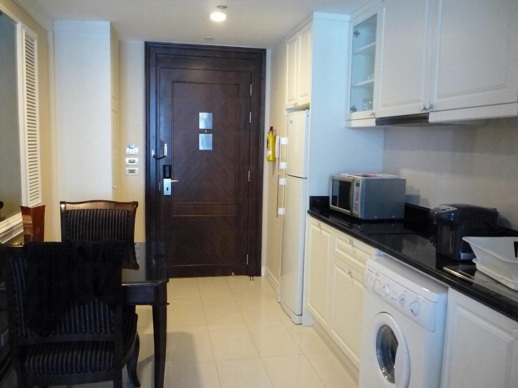 客房室內設計以白色與金色為主,泰式壁畫與法式地板、百葉窗揉合出一種獨特的異國風情。另外,客房明亮寬敞,又有廚具、洗衣機、無線上網等設施,可謂麻雀雖小,五臟俱全。