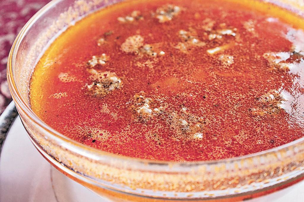 餐廳提供 20 多種沙律、40 多種阿拉伯風味炖菜、胡木思醬(Hommos Bi Tahina)、巴巴橄努茄(Babaganouge)、塔布里、發杜斯等菜式。其中的蓋夫大湯(Kofta Sehriyeli Domates Corbasi )是土耳其菜式,湯底用番茄再配上炸肉丸、牛油、小意大利粉作湯料,十分惹味。